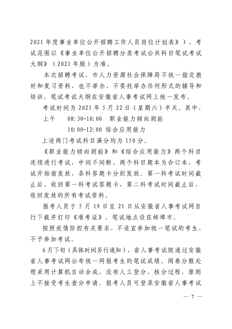 附件2:蚌埠市2021年度事業(yè)單位公開招聘工作人員公告.doc