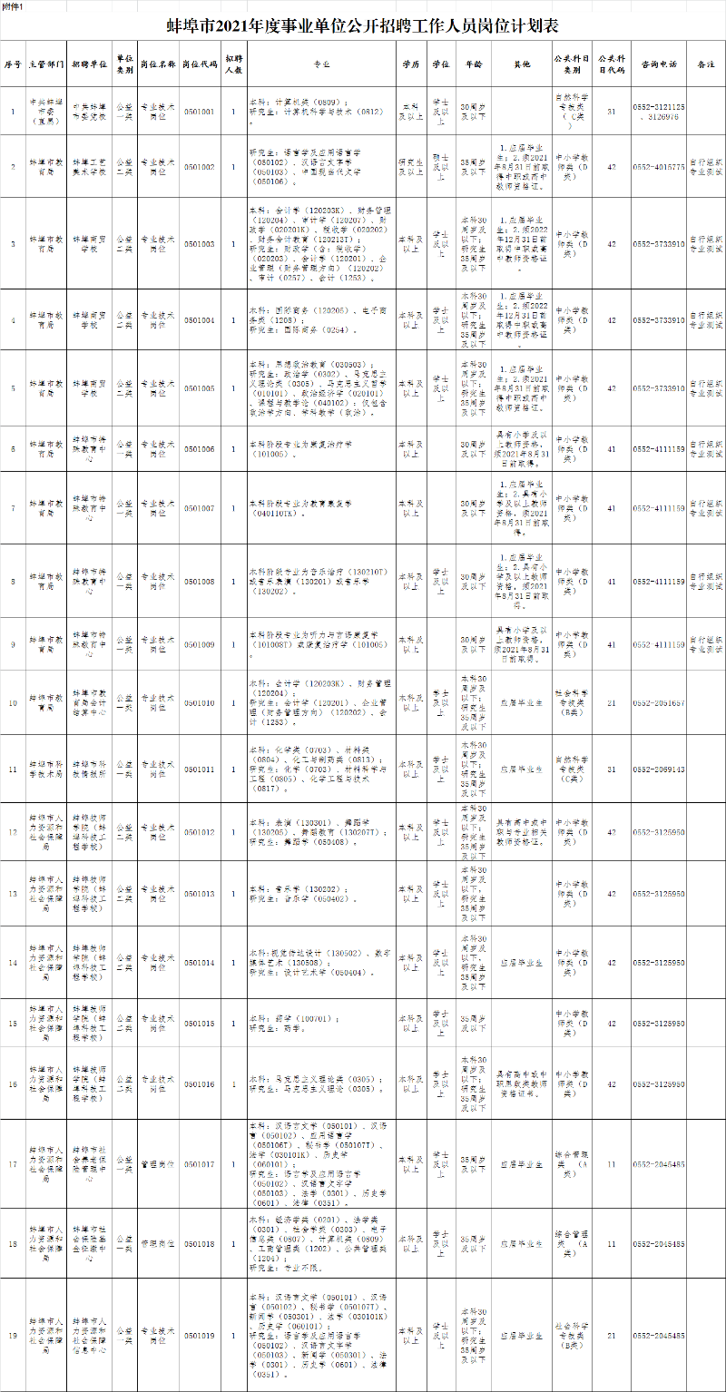 附件1:蚌埠市2021年度事業(yè)單位公開招聘工作人員崗位計劃表.xlsx