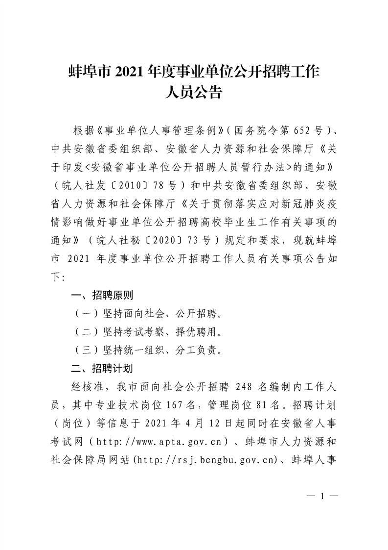 安徽省蚌埠市2021年度事業(yè)單位公開招聘工作人員公告