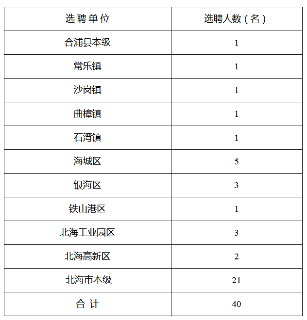 1.選聘數(shù)量。北海市兩新組織黨建工作組織員40名。