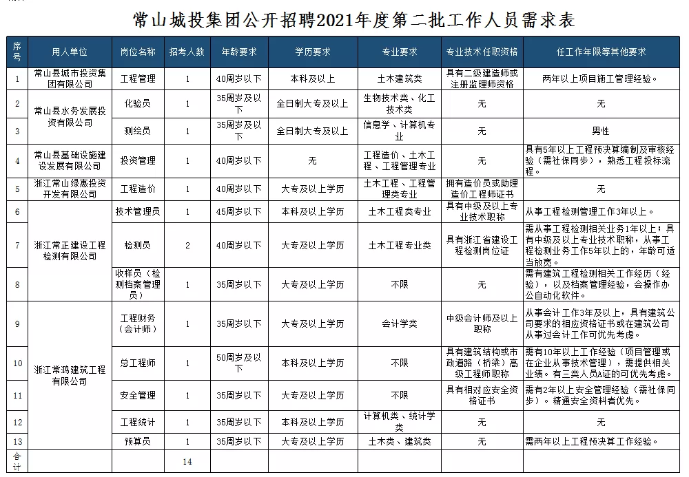 因工作需要,常山縣城市投資集團有限公司擬公開招聘2021年度第二批工作人員,現(xiàn)將有關事項公告如下: